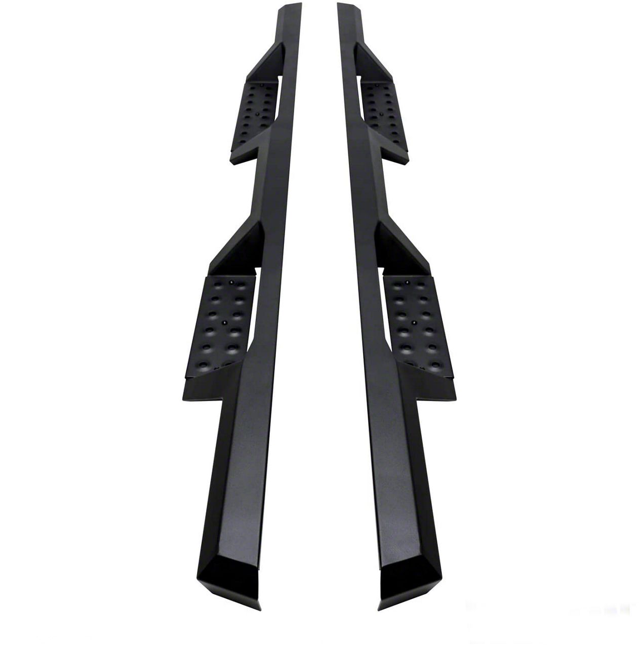 Durable Construction. These HDX Side Step Bars are manufactured from heavy duty steel plate, for superior strength and rigidity. Even if hit by road or trail debris, these Side Step Bars won’t easily bend or deform. These Side Steps are then powder coated in a textured black finish for excellent durability and long lasting corrosion resistance. As part of the final assembly a set of rugged non-slip step pads are installed.