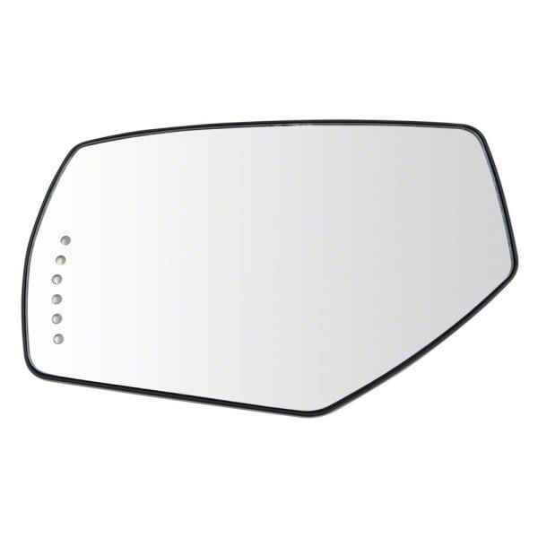 Description. Door Mirror Glass; Heated Turn Signal Spotter Glass Mirror Glass; Left