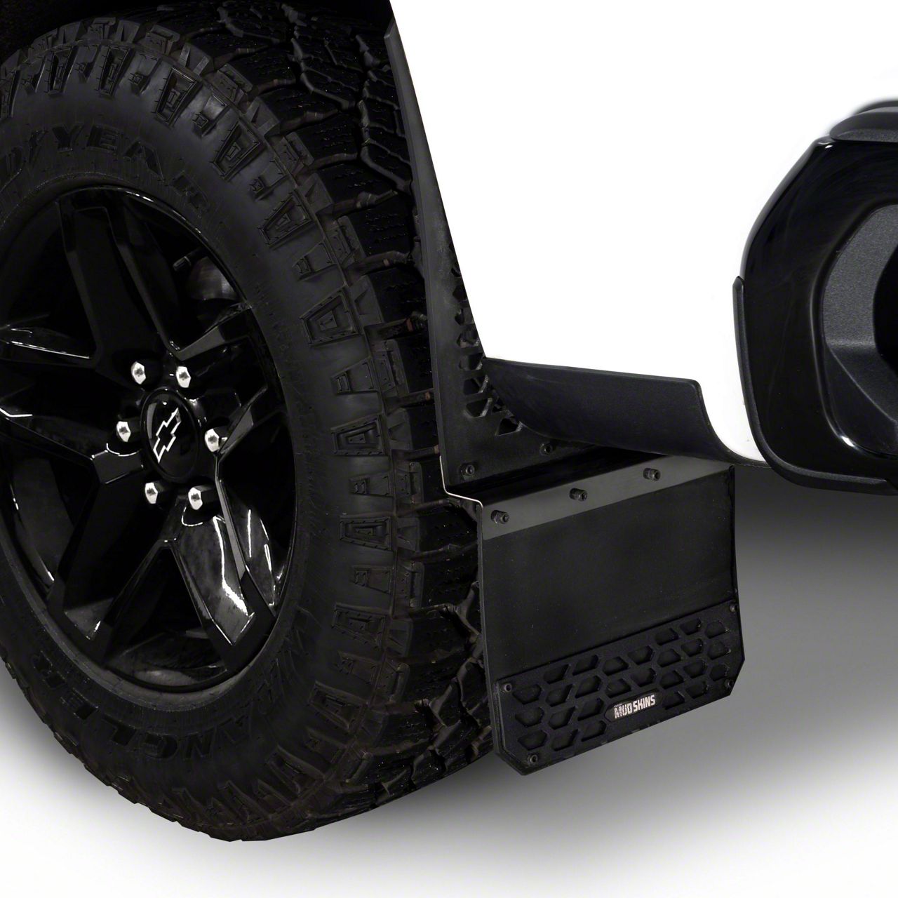 Protection and Style. A set of Hex Shield Series Mud Skins are an ideal way to protect your Silverado's body and paint from stones and road debris that get kicked up while driving. These Mud Skins, a.k.a. mud flaps or splash guards, not only protect your Silverado from damage, but they look great while doing it with their Rugged Hex Shield™ design.