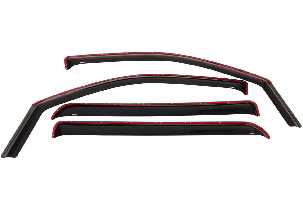 Wade In-Channel Wind Deflectors are a quick and quality solution to reducing wind, noise, heat, and glare without compromising the entry of fresh air when windows are rolled down slightly. They are easily installed by inserting the flanged edge into the directly window channel and secured with 3M automotive grade tape. Wade Wind Deflectors promote the circulation of fresh air while minimizing its volume and strength as it re-directs it up and into, or out of the vehicle. Their sleek design deflects wind and noise from entering the vehicle for a more pleasant ride any time of year. They are made from high-gloss smoke acrylic, and have transparency, so, visibility is never obstructed.