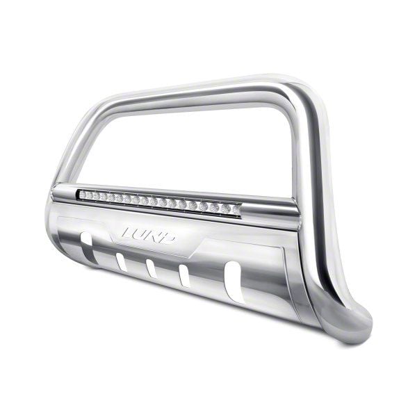Premium, Stylish Construction. This LED Bull Bar is made of high-quality stainless steel for long-lasting durability. This heavy-duty construction reinforces your truck’s protection with tough off-road armor featuring a high-strength bull bar and a sturdy skid plate. Moreover, the shiny, polished finish enhances the frameworks’ resistance to corrosion while sporting a radiant highlight to your truck’s tough exterior.
