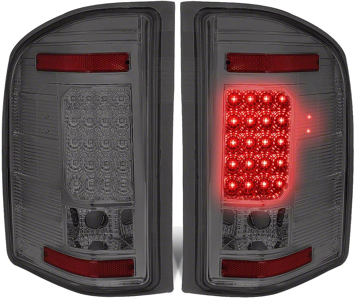 Tail Light Improvement. Time can be brutal to your tail lights, causing fading or breaking. These LED Tail Lights; Smoked will provide your Silverado 3500 with outstanding illumination, which enhances safety, and even some extra style points.