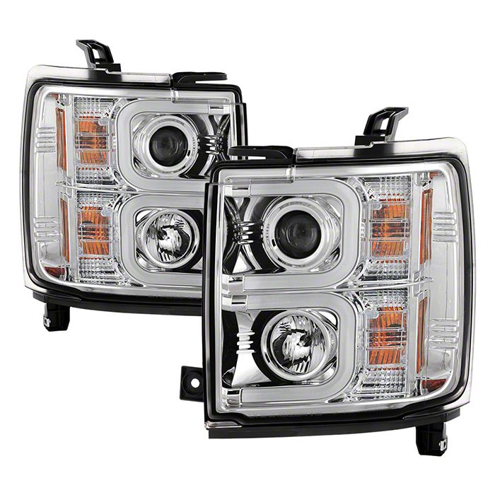 Sleek Addition to Your Truck. If your Silverado 3500 needs a visual and safety upgrade, you can’t go wrong with these light bar DRL projector headlights. They feature great-looking clear lenses and chrome housings while offering enough illumination for daytime and night-time driving. Besides improving the aesthetics of your vehicle, they also enhance safety by lighting up the road ahead without blinding other motorists.