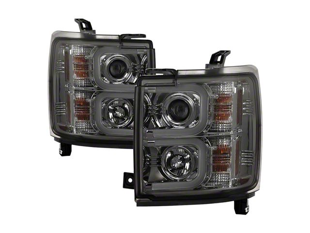 Aggressive Off-Road Styling. These squared Spyder headlights with smoked lenses in chrome housing feature an aggressive style, enhancing your Chevy Silverado’s appearance. Thanks to DLR light bars and halogen amber accent lights, these headlights will keep your vehicle visible both during the day and at night. The projectors are exceptionally bright, emitting a sharp and focused beam. They will light your way and keep you safe wherever you go – on the city streets, on track, or off-road.
