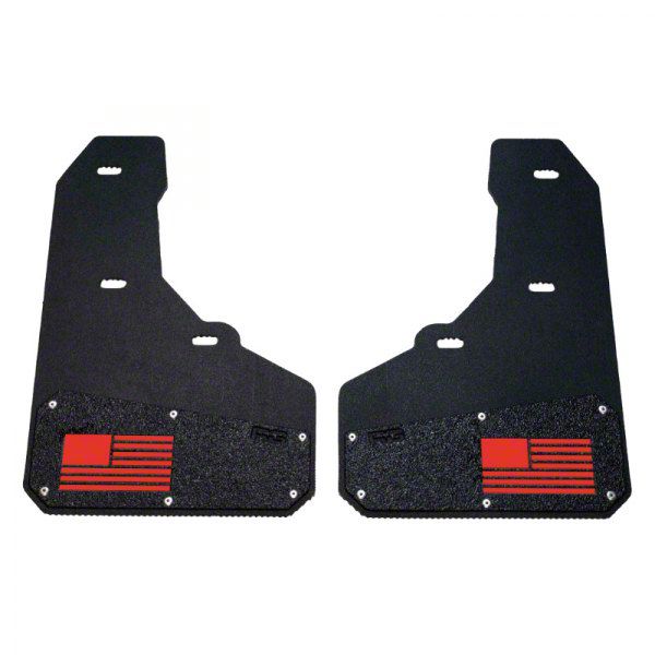 Durable Structure. The Merica Mud Flaps are expertly crafted with premium stainless steel, ensuring exceptional durability and resistance to the elements. Their design features a striking red flag, proudly displaying your love for the country. Whether you're navigating muddy terrains or facing the onslaught of road debris, these mud flaps are designed to withstand the toughest conditions, keeping your vehicle protected and clean. With Merica Mud Flaps, you can rest assured knowing that your investment will last for the long haul, offering reliable performance and adding a touch of American pride to your ride.