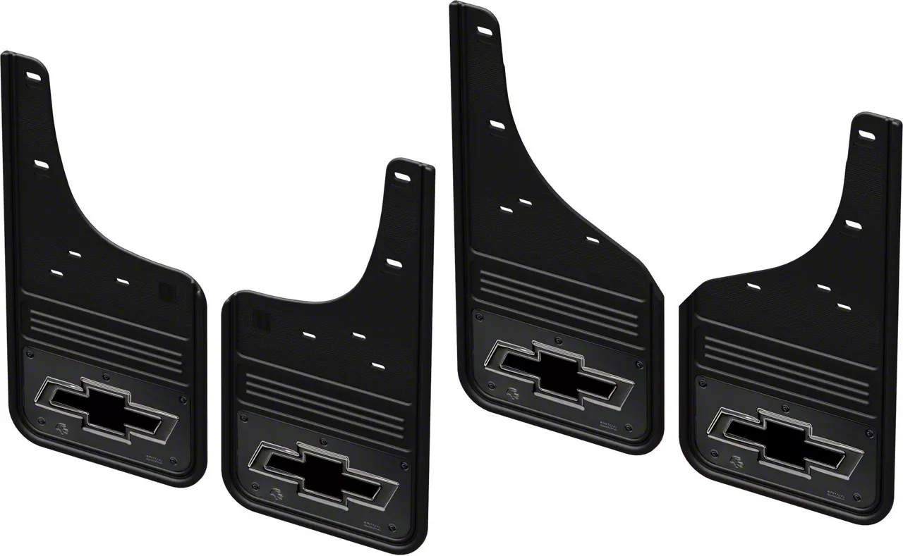 No-Drill Mud Flaps with Gunmetal Bowtie Logo; Front and Rear (20-26 Silverado 3500 HD SRW)Find parts that fit my vehicle