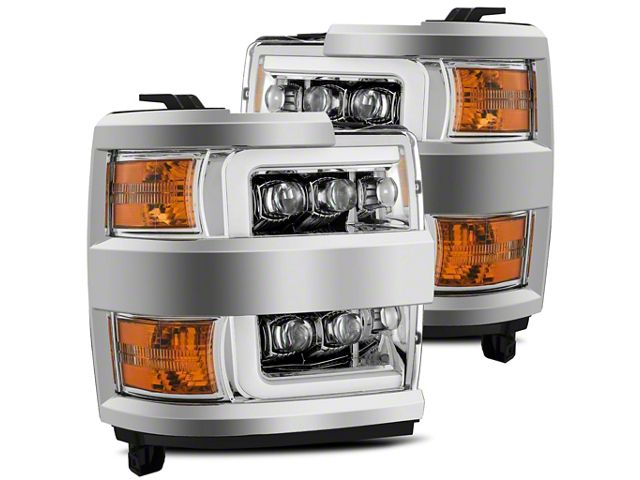 Outfitted Modern Technology. Bring a futuristic, modern look to your Silverado 3500 HD with the AlphaRex NOVA-Series LED Projector Headlights; Chrome Housing; Clear Lens. Outfitted with Clear Lens, Osram Oslon LED chips, and Chrome Housing for enhanced brightness, each headlight is tailored to fit 2015-2019 Silverado 3500 HDs.