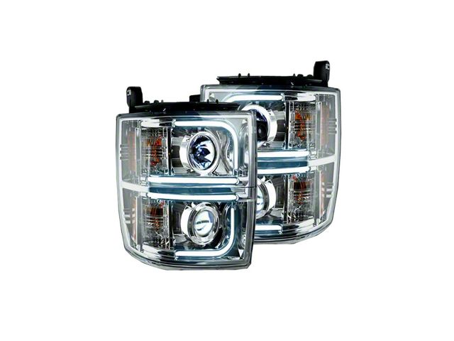 Application. These OLED Halo Projector Headlights with Chrome Housing and Clear Lens fit all 2015-2019 Chevrolet Silverado 3500 HD models.