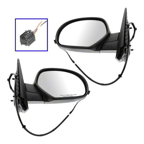 Description. Door Mirror Set; Power Heated Manual-Folding Chrome 2 Piece Mirror Set