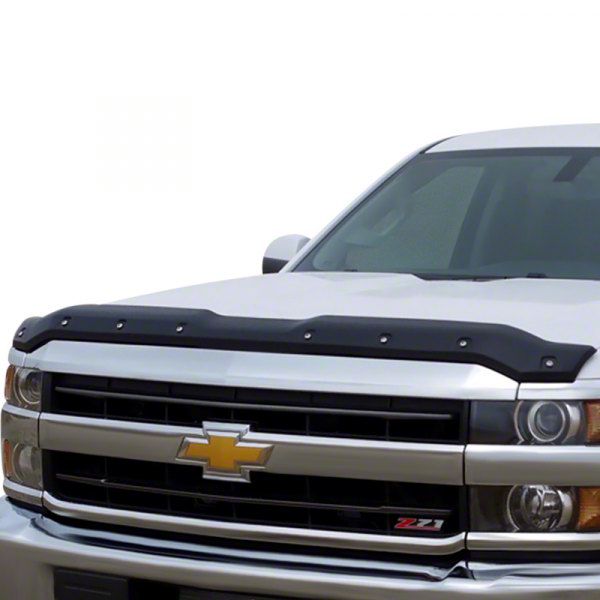 Function and Aesthetic. If you want to install a hood deflector but are concerned about it damaging your hood, you can put yourself at ease. The Premium Bolt-On Look Hood Deflector (Smooth) is low-profile but designed with no contact between the deflector and the hood and does not require drilling, thus avoiding paint wear or hood damage. This hood deflector will protect you from bugs and flying rocks and road debris that can potentially damage your hood and windshield. It also has a "Bolt-On Look" style giving your truck an aggressive, off-road appeal.