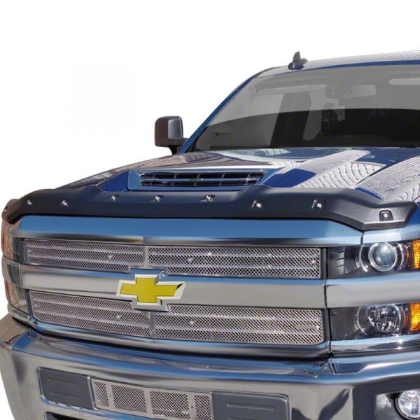 Protective Styling. Add protection to your ride and preserve the clean look of your hood with this Premium Bolt-On Look Hood Deflector; Smooth on your Silverado. Made from tough and lightweight ABS plastic, it offers a strong protection against small debris, preventing chips and scratches on your hood paint and metalwork.