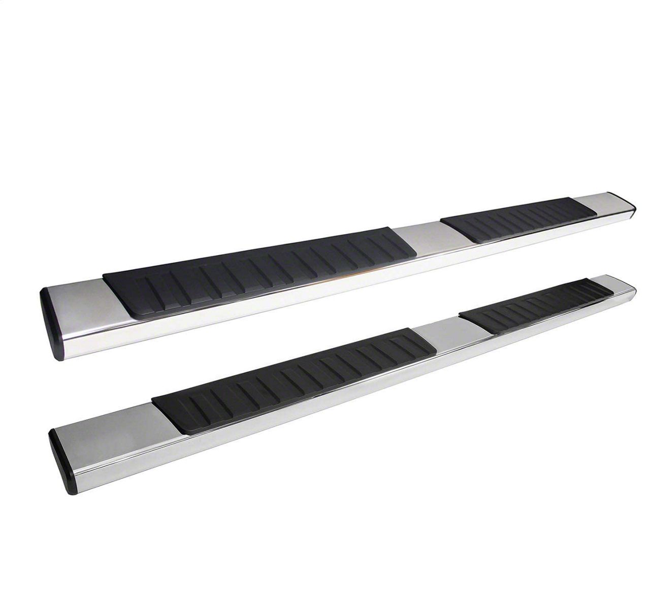 Stainless Steel Construction. These R7 Nerf Side Step Bars are manufactured from heavy duty stainless steel for superior strength and rigidity. The Side Steps are then completed in a bright, mirror polished finish for good looks and long lasting corrosion resistance. As part of the final assembly a set of rugged non-slip step pads are installed.
