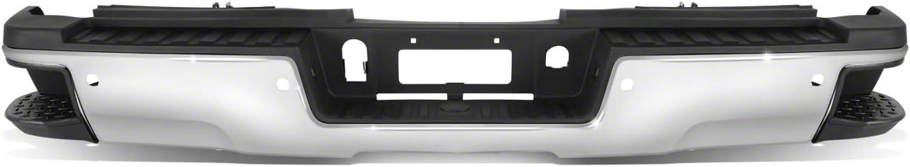 Durable and Stylish Rear Bumper. This Rear Bumper offers a robust and stylish upgrade for your Silverado 3500 HD, featuring a chrome finish that enhances your vehicle's appearance. It is pre-drilled for backup sensors, providing added safety and convenience.