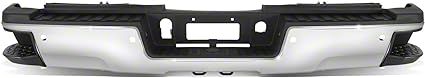Functional and Stylish Rear Bumper. This rear bumper is engineered to provide a blend of style, durability, and functionality for your Chevrolet Silverado 3500 HD. Featuring a full-width design and a combination of black and chrome finishes, this bumper enhances the look of your truck while providing robust rear-end protection.