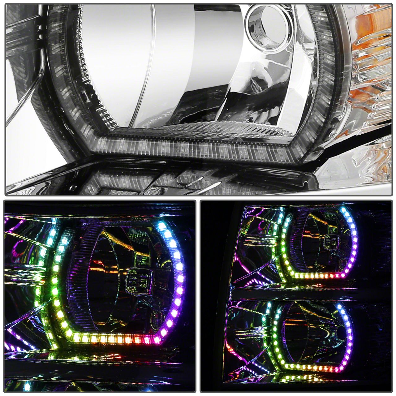 RGB LED DRL Headlights with Amber Corners; Chrome Housing; Clear Lens (07-14 Silverado 3500 HD)Find parts that fit my vehicle