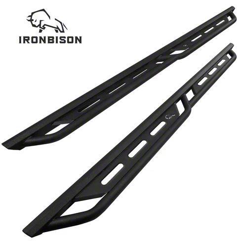 Construction and Appearance. Built from heavy-duty carbon steel, these running boards feature a unique pentagon main tube structure paired with a 1.7-inch round reinforcement tube for additional strength. The step plates measure 5 inches and 3.8 inches wide, offering stable traction in all conditions. A 360° e-coating and textured black powder-coat provide superior corrosion resistance and a bold, aggressive look.