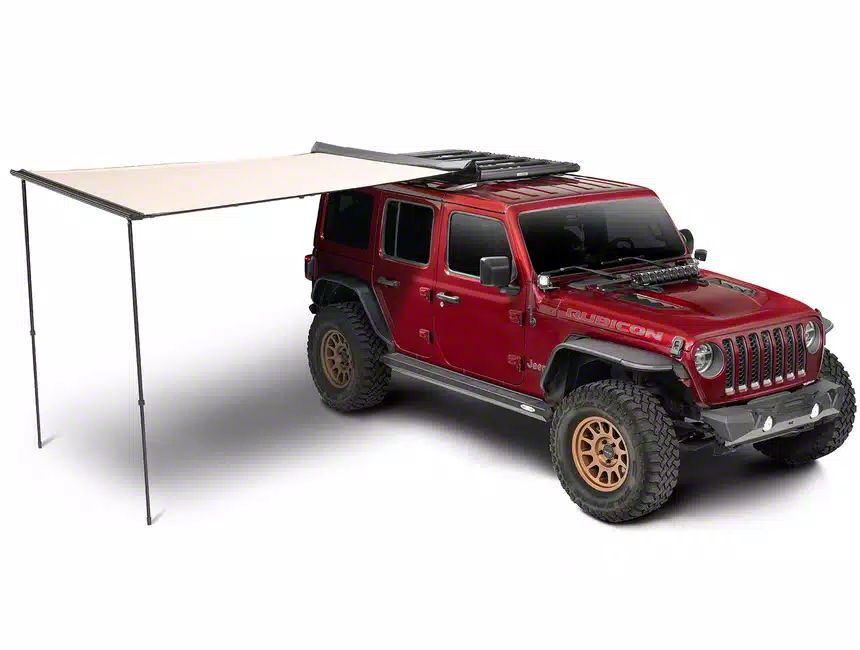 Stay made in the shade on every adventure. From the mountains to the mesas, the RealTruck Overland Awning delivers essential shade and shelter in a flash, anywhere you are. This pull-out style awning features quick set up in minutes to provide effective cover for any outdoor activity, from camping to tailgating or some cool shade for relaxing. The awning's T-slot mounts allow for secure attachment to your rig for swift set-up, while the two-piece adjustable vertical supports provide stability on any terrain. Built from water-repellant ripstop polyester, the Overland Awning meets the durability demands of anyone from the casual weekend camper to the serious overlanding enthusiast.