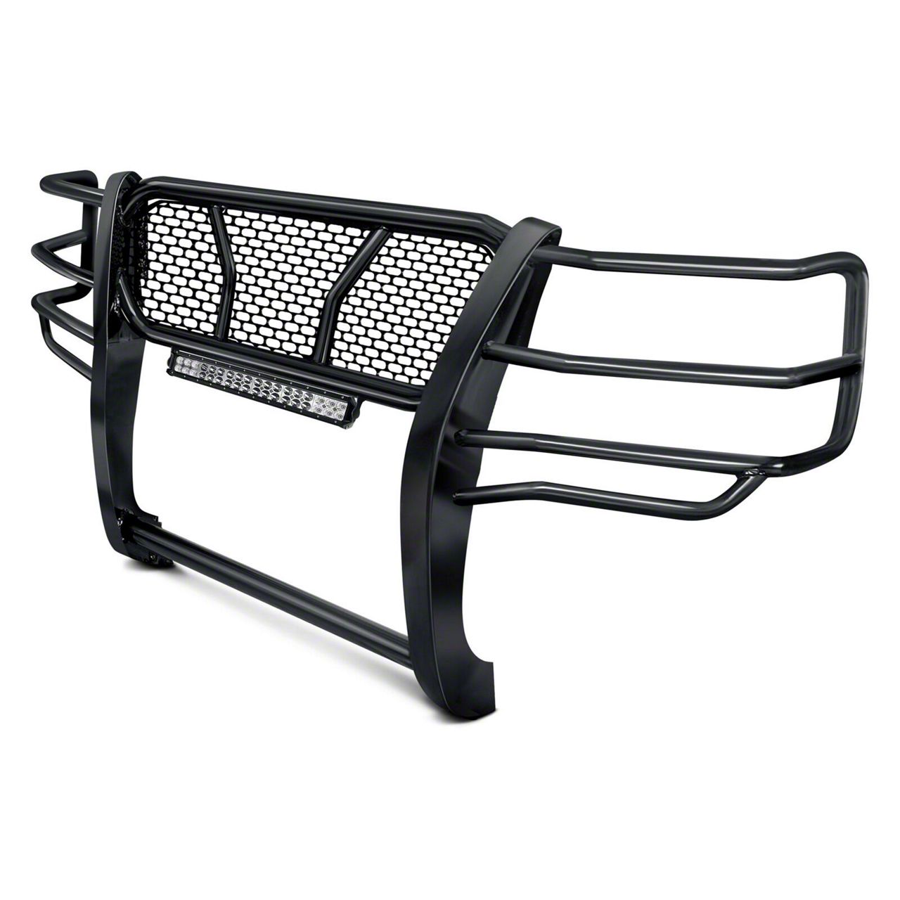 Protect Your Front End. This Rugged Heavy-Duty Grille Guard with 20-Inch LED Light Bar; Black will provide your Silverado 3500 HD superior front-end protection with some safety enhancements. The light bar will illuminate the horizon and the whole grille guard adds up to a sturdy, stylish appearance improvement.