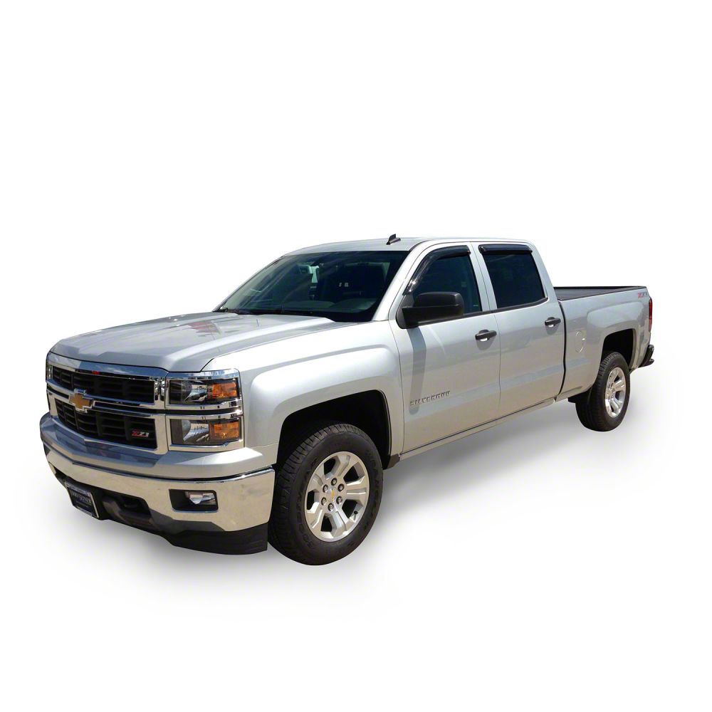 Application. These Side Window Deflector; Slim Wind Deflector; Smoked; 4-Piece fits all 2015-2018 Silverado 3500 HD Crew Cab models.