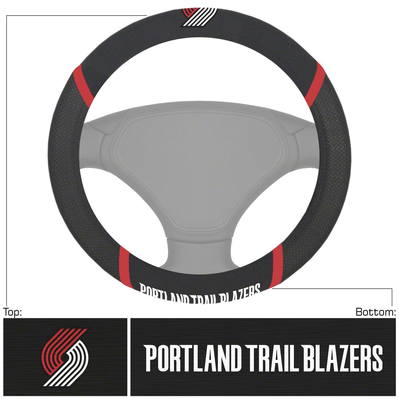 Steering Wheel Cover with Portland Trail Blazers Logo; Black (Universal; Some Adaptation May Be Required)