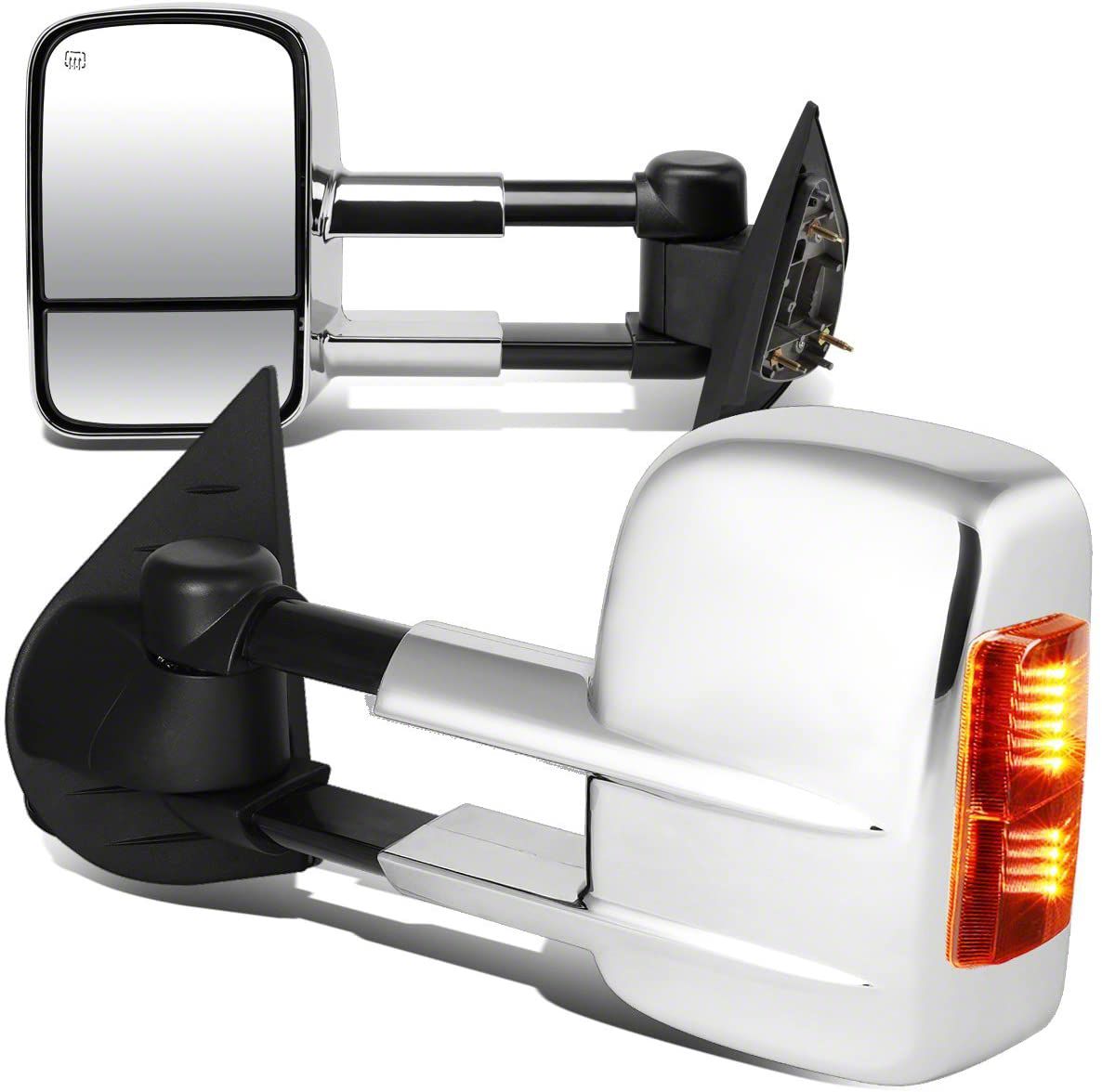 Description. Towing Mirror; Powered; Heated; Amber Signal; Chrome; Pair