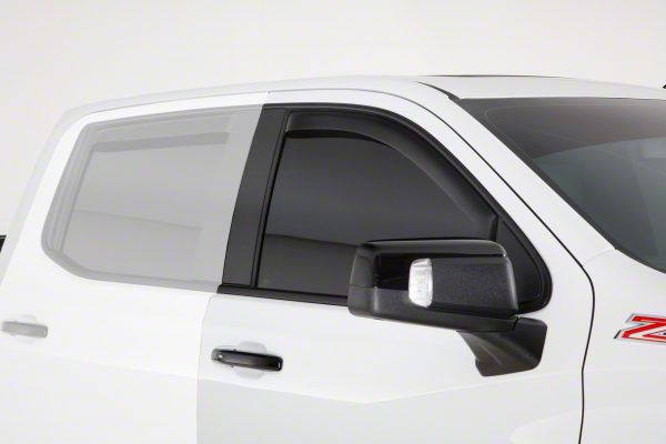 Upgraded Interior Fresh Air. Equipping your Silverado with window deflectors is a great way to increase fresh air circulation inside its cab. As far as these accessories go, you can’t go wrong with these Ventguard Window Deflectors; Front Placement; Smoked tint. These front window deflectors combine a streamlined design with a smoked colorway. This versatile design keeps light rains out of your interior while also helping to diminish the sun’s glare during bright summer days. Moreover, these window deflectors can also minimize wind noise when driving at highway speeds, making your trips stress-free.