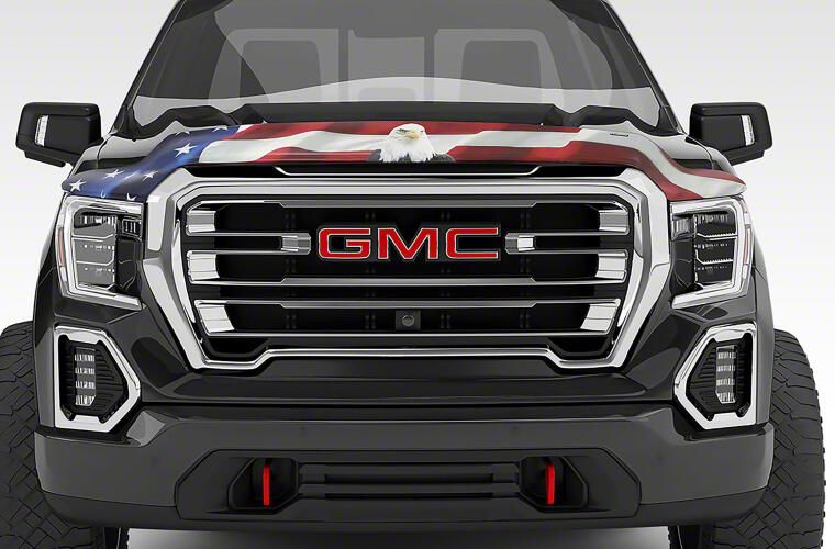Vigilante Premium Hood Protector; American Flag with Eagle (01-02 Silverado 3500 HD)Find parts that fit my vehicle