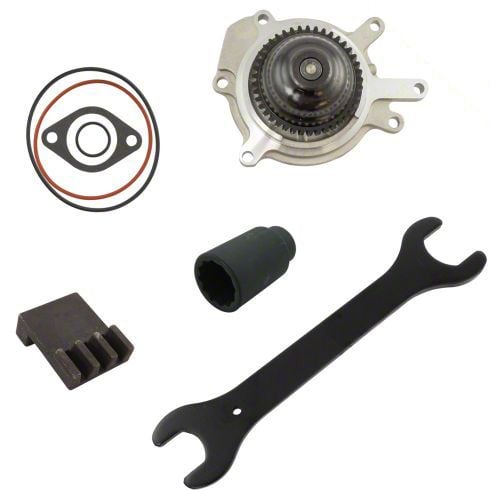 Comprehensive Cooling System Repair. This Water Pump kit is designed for complete cooling system service on 2007 to 2016 6.6L Duramax Silverado 3500 HD models. It includes essential tools such as a crank pulley bolt socket, fan clutch wrench, and flywheel lock tool, making it ideal for a thorough and precise water pump replacement.