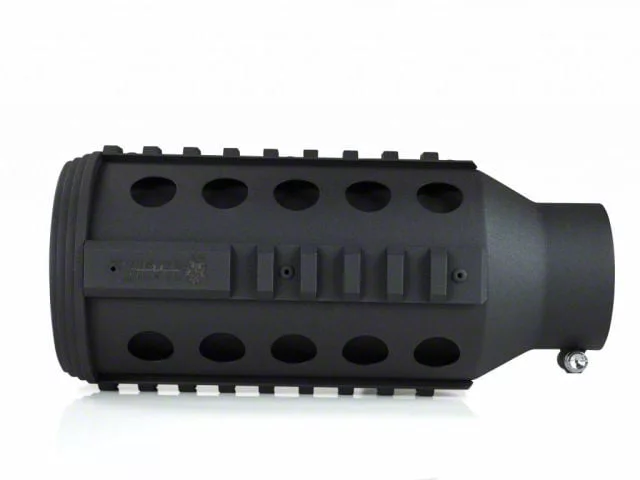 Really stand out from the crowd with this super aggressive AR-15 exhaust tip from Sinister Diesel. Designed to look like the quad-rail handguard on a real AR-15, a gun that’s been used and respected by military and police officers for some time, you can show your interest in this popular firearm. Even better, it works on any diesel truck exhaust system that fits the 5-inch inlet, while providing a more intimidating 6-inch outlet.Stainless steel construction and powder coating helps ensure durability, while the dual wall design sheds heat efficiently. Installation is a breeze, requiring only basic hand tools and a few minutes of your time.U.S. Patent PendingFeatures and Benefits:Construction - Stainless SteelProduct Design - CNC precision machined rails and ring1 Year Warranty15" Overall Length