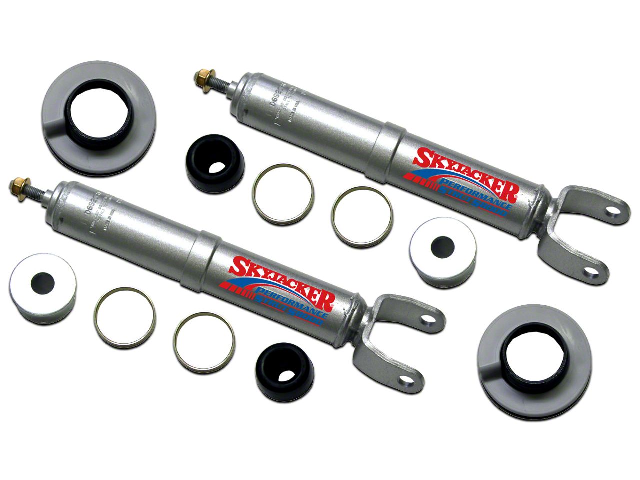 Aggressive Elevation. The SkyJacker Adjustable Front Strut Leveling Kit offers a hassle-free height improvement. It adds up to 2.5” to your truck’s height for greater ground clearance. This lets you mount larger wheels without sacrificing your riding comfort.