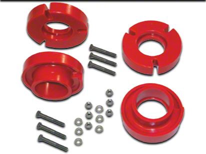 Poly Pucks. This kit features Tough Polyurethane Pucks. They're strong enough to handle the load and impacts imposed by life on the trail. They're the simple way to get the nose of your 4X4 F-150 up 2.5" higher, which is enough to allow use of larger rubber (without rubbing). High-grade hardware is included.
