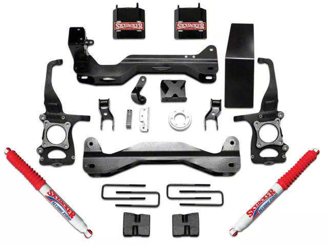 Better Ride Quality. If you want to jack up your F-150 and provide yourself with a lift to brag about, SkyJacker is the right brand for you. The name says it all and with the SkyJacker 4.5 in. Suspension Lift Kit w/ Hydro Shocks, you can enjoy the world as you sit an additional 4.5 inches above your factory F-150 lift. One of the nice things about this lift kit is that it is perfect for both on and off-road applications. This system does allow you to install tires up to 35 inches in size and with your increased ground clearance, you never again have to think twice about an obstacle in your way.