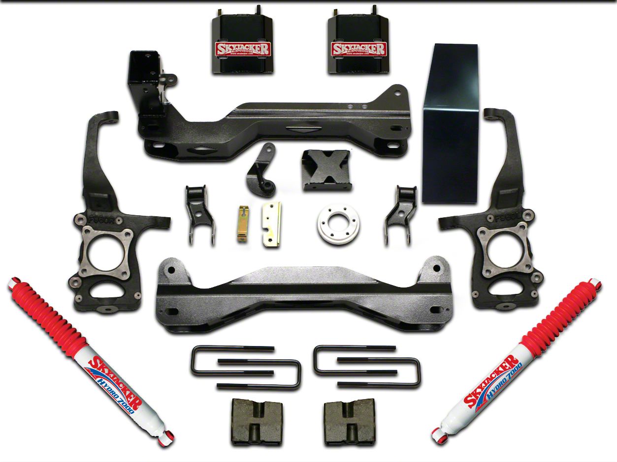 Complete Face Lift. SkyJacker's 6 in. Front Spacer Suspension Lift Kit with Black MAX Shocks is a perfect addition to your 2009-2014 Ford F-150 if you're looking to maximize your truck's intimidating look. This kit has all the components to give you that massively lifted, level look that is sure to clear a path for you on the road and on the trail.