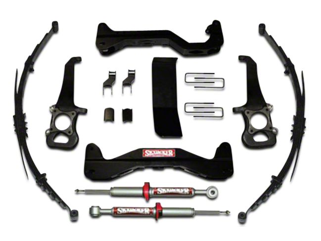 Lifted to the Sky. When you really want to raise the height of your truck this Skyjacker Suspension Lift Kit is the way to do it. With a 6"" lift up front and a 5"" lift in the rear, you can effectively create ample ground clearance and space for much larger tires if you want them. The kit uses modified leaf spring and raised knuckles to do the job. It's rock solid and preserves performance when installed onto the truck.