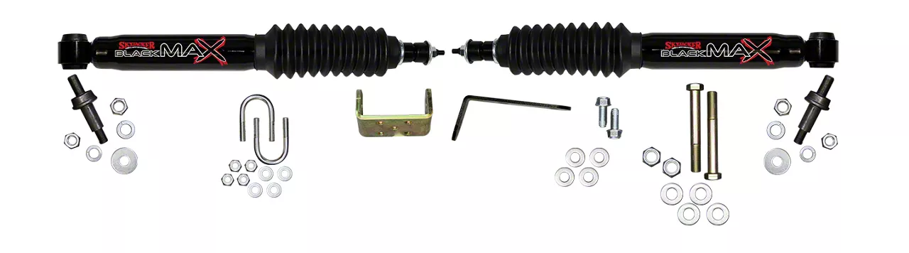 Superior Construction. This SkyJacker Black MAX Dual Stabilizer Kit features a 360-degree arc-welded mount which provides superior structural strength. Whether you’re driving on either off-road or on the streets, these dual steering stabilizers can withstand the bumps and harsh vibrations of your suspension. Plus, these stabilizers are now available in a black color to match your black MAX shocks.