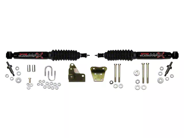Enhanced Steering Performance. Lifted vehicles with larger tires often experience front end bump steer and vibration issues on uneven roads or trails, but with the SkyJacker Black MAX Dual Stabilizer Kit for Skyjacker 6 in. Lift Kit, you are guaranteed to see an improvement in vehicle steering performance. The dual steering stabilizers lessen "shimmying" caused by the added weight of large wheels and reduce the harshness of uneven roads by dampening negative feedback on the steering system.