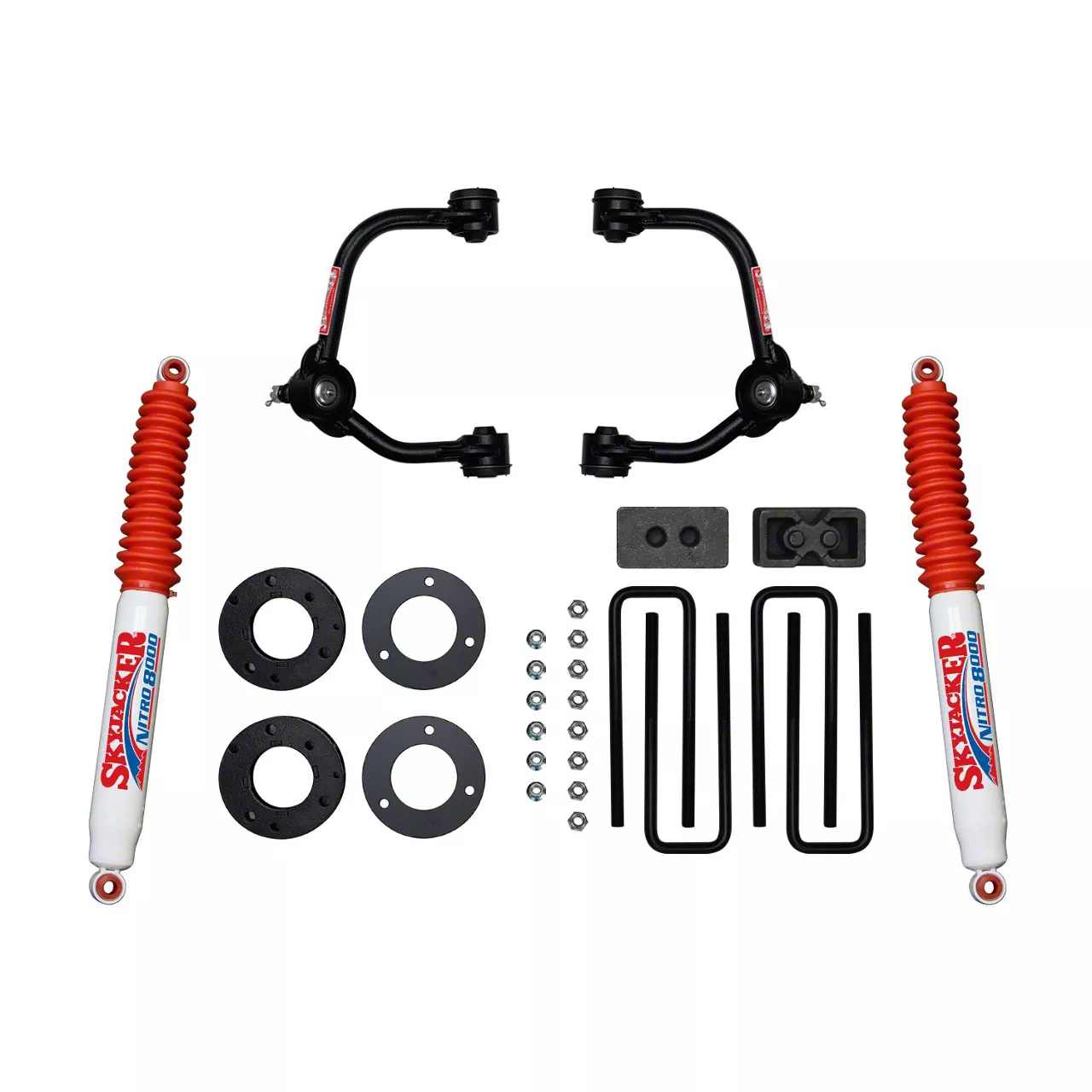 Superior Off-Road Performance. You can beef up your truck’s off-road performance by installing this SkyJacker 3-Inch Suspension Lift Kit with Nitro 8000 Shocks. With this installed, you’ll be able to achieve an extra lift height of 3 inches. The added lift lets your vehicle to easily overcome high curbs and obstacle-filled paths without its chassis getting damaged.