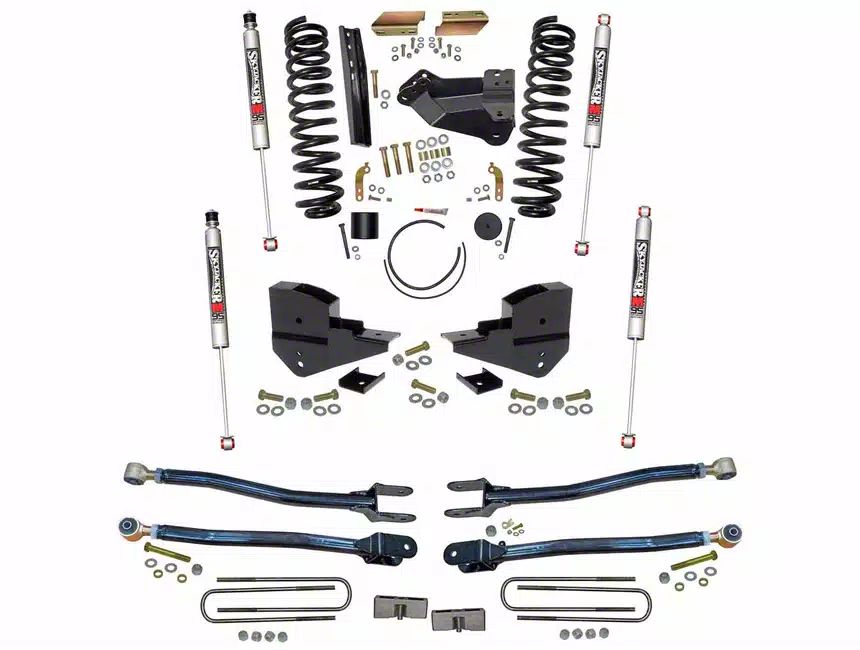 Enhanced Suspension Performance for All-Terrain Driving. The SkyJacker 4-Inch 4-Link Suspension Lift Kit is designed to provide superior off-road capability while maintaining comfort on paved roads. With a 4-link system for added stability and M95 monotube shocks for improved damping, this kit offers better control and handling in various driving conditions.