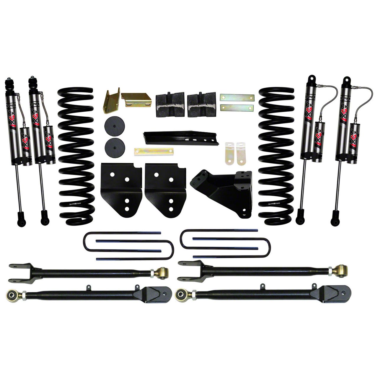 Advanced 4-Link Suspension Upgrade. The SkyJacker 4-Inch 4-Link Suspension Lift Kit with Rear Lift Blocks and ADX 2.0 Remote Reservoir Shocks delivers a major upgrade in performance, control, and ride quality for your 2011 to 2016 4WD 6.2L F-250 Super Duty. This system replaces the factory radius arms with a full 4-link conversion, optimizing articulation and providing unmatched front suspension geometry for both highway and trail conditions.