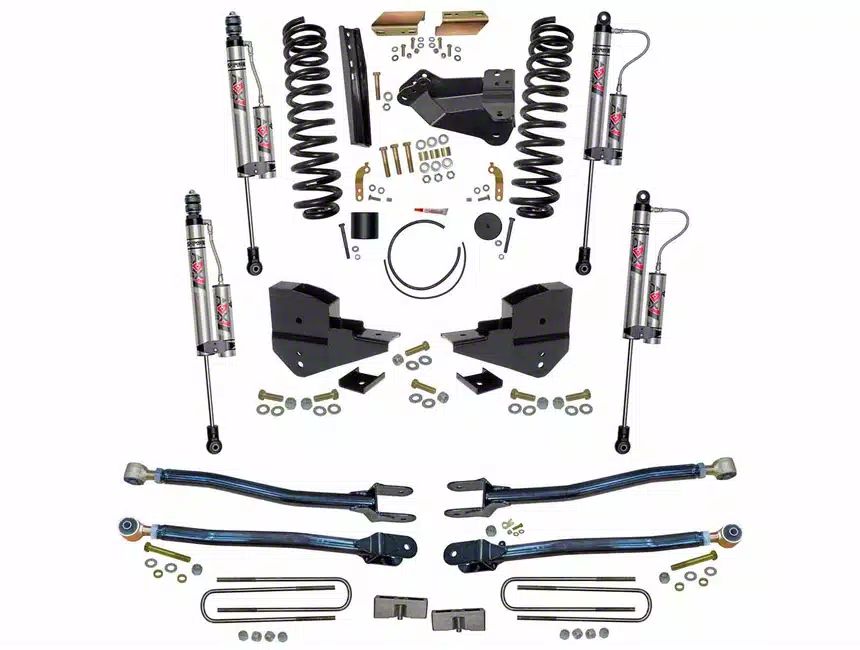High-Performance Suspension Upgrade. The SkyJacker 6-Inch 4-Link Suspension Lift Kit provides a significant lift, enhancing ground clearance and enabling the use of larger tires. Its four-link suspension design ensures improved stability and strength, making it ideal for demanding off-road conditions while maintaining on-road drivability.