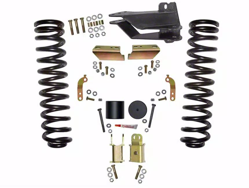Improved Vehicle Stance. Elevate your Ford F-350 Super Duty with the SkyJacker 2.50-Inch Front Coil Spring Leveling Kit with Shock Extension Brackets. This comprehensive kit is expertly designed to enhance your truck's stance, improve off-road capability, and maintain a comfortable ride. The kit comes with shock extension brackets, ensuring that your truck's suspension continues to function optimally at the new height. These brackets help maintain proper shock angle and travel, preserving ride quality and suspension reliability.