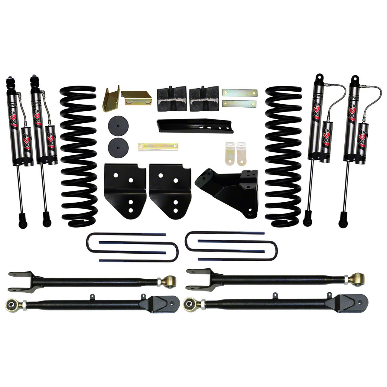 Superior Suspension Performance and Lift. The SkyJacker 4-Link Suspension Lift Kit is engineered to provide enhanced suspension articulation, improved ride quality, and a commanding 4-inch lift for your Ford F-350 Super Duty. With high-performance components and SkyJacker Softride Technology, this kit delivers a smooth ride on and off the road.