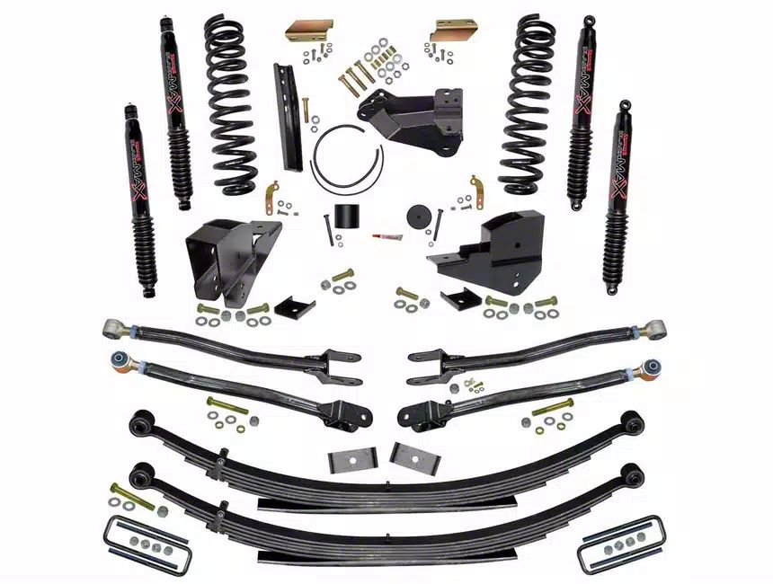 SkyJacker 4-Inch 4-Link Suspension Lift Kit with Rear Leaf Springs and Black MAX Shocks (23-26 4WD 6.8L, 7.3L F-350 Super Duty SRW w/o 4-Inch Axles, Factory LED Headlights, Onboard Scales)Find parts that fit my vehicle