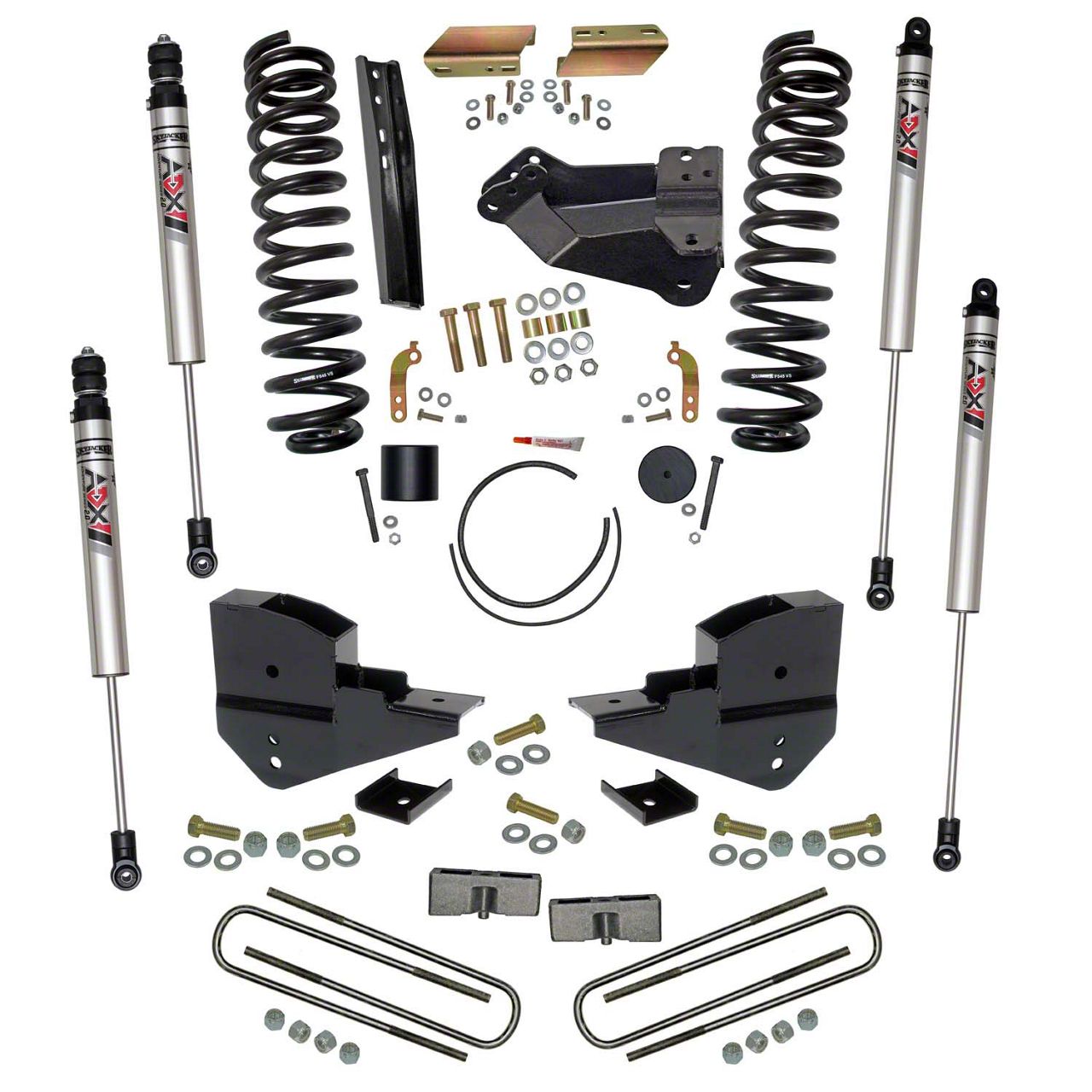 SkyJacker 4-Inch Suspension Lift Kit with Rear Lift Blocks and ADX M2.0 Monotube Shocks (23-26 4WD 6.7L Powerstroke F-350 Super Duty SRW w/o 4-Inch Axles, Factory LED Headlights, Onboard Scales)