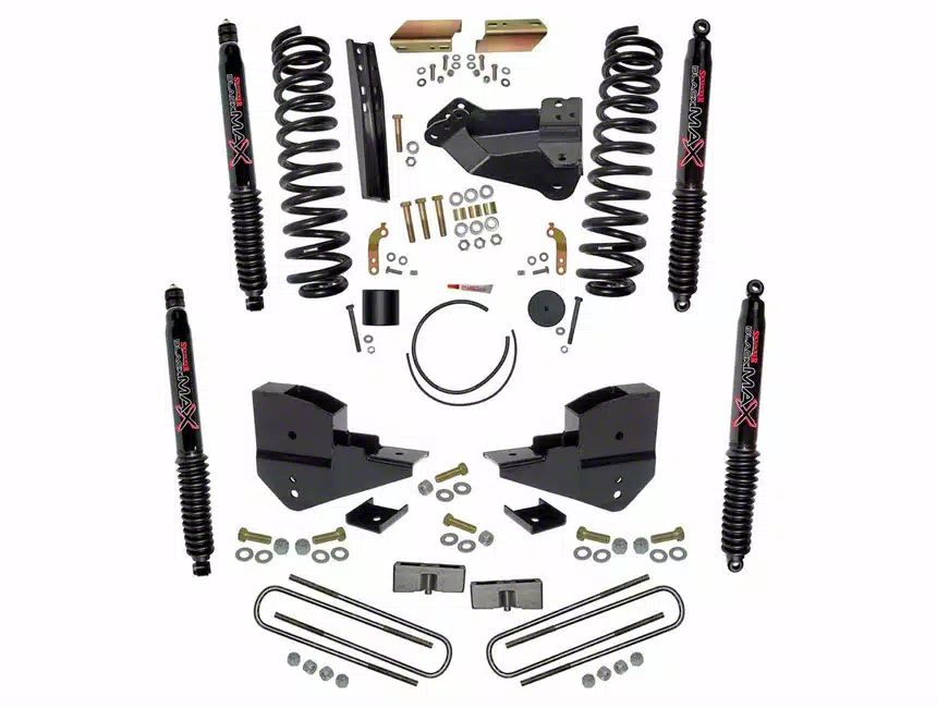 High-Performance Lift Kit. The SkyJacker 4-Inch Suspension Lift Kit with Rear Lift Blocks and Black MAX Shocks enhances your vehicle's off-road capabilities and appearance. This kit provides increased ground clearance and room for larger tires and wheels, making it perfect for off-road enthusiasts.