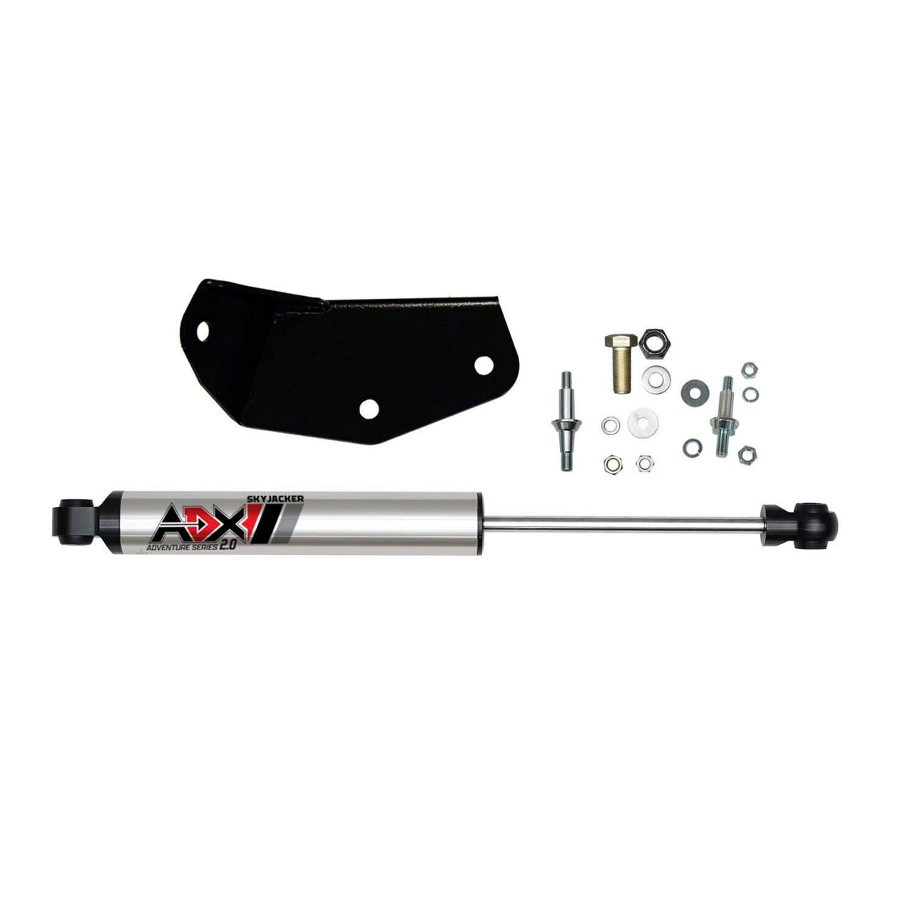 Skyjacker® Single Steering Stabilizer is a dampening shock for your steering system. It dampens out the harshness of the highway and places control back into the driver’s hands. Controlling the terrain helps reduce the physical fatigue of fighting the road. Improves steering response time and allows you to enjoy the drive. CNC machined 6061-T6 polished aluminum hard anodized cylinder body ADX 2.0 stabilizer with 30mm bore & 14mm piston rod provides specific valving needed with equal compression and extension damping performance. The dampening control also adds life to tires, tie rod, ball joints and other steering components. CNC machined 6061-T6 polished aluminum hard anodized body and caps for superior rust resistance. CNC machined 6061-T6 polished aluminum hard anodized body dissipates heat up to 30% faster than traditional steel body steering stabilizers. Internal high performance fade resistant gas cell yields longer life, improves handling, & performance.