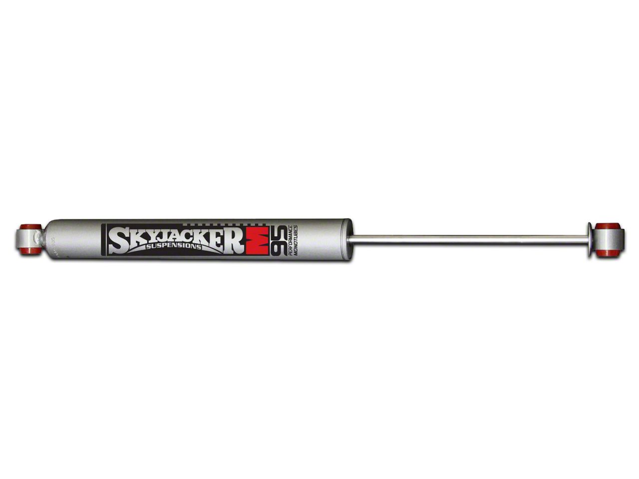 Solidly Built. Skyjacker created its M95 Rear Shock Absorber for stock height from high-quality chromed shaft. Its monotube design helps it endure the vigors of off-roading without giving in. The solidly built coil spring help provide better dampening. A black powder coat finish enhances durability by preventing rust and corrosion.