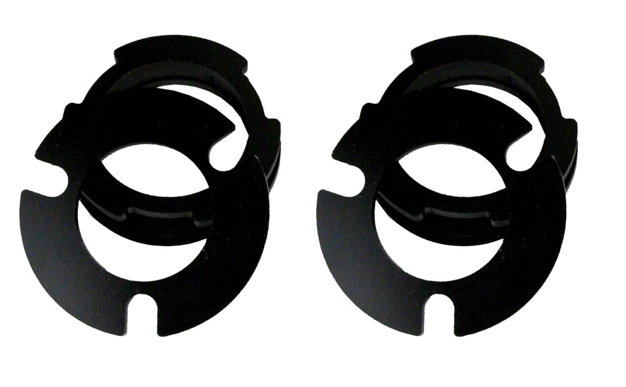 Durable Alloy Spacers. This leveling kit levels-off rake via a set of front spacers. These spacers are constructed from high-grade alloy, making them highly resistant to compression forces. What’s more, these spacers are machine-formed ensuring a precise fit when installed. Lastly, protecting them from corrosion is a durable black powder-coat finish.