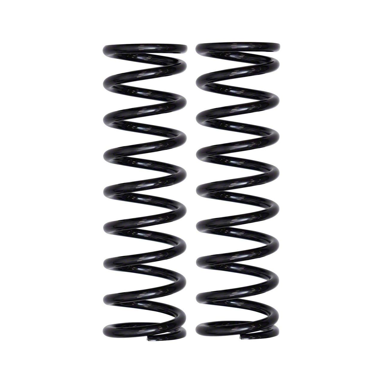 Skyjacker’s legendary Softride® coil spring technology engineered processes achieve exact height and precise coil spring rates. Known for phenomenal Softride® performance, Skyjacker's precision engineering gives you off-road responsiveness with smooth consistence handling characteristics. The process starts with high tensile chrome silicon wire, an advanced method of shot peening and a presetting process. Each coil spring is blasted (shot peen) with hard steel pellets at very high velocities. Shot peening compresses the surface of the steel thereby increasing the tensile strength of the spring.Compressing the spring completely down to where the coils touch (solid height) is preset. This takes any fatigue or stress off the spring and eliminates sagging. Every coil spring has endured a cycle test to assure the very best in quality. Coilover coil springs end configurations are closed. Each coil springs end configurations is ground flat to create a flat surface perpendicular to the spring axis for even surface. This flat surface delivers an even distribution of spring force to the working assembly and improves ease of assembly.All Made in the USA with a stylish, extremely durable protective powder-coated black finish that resists corrosion.