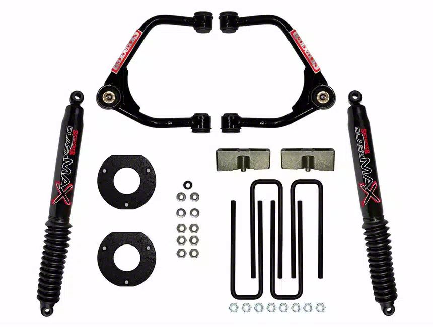 Application. The SkyJacker 3.50-Inch Suspension Lift Kit with Black MAX Shocks fits 2019-2024 Sierra 1500 Crew Cab models with 5.80-Foot Short Box & Rear Mono-Leaf Springs, excluding AT4 & Denali.